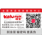 概述:消費(fèi)者在購買已加入電碼防偽系統(tǒng)的企業(yè)所生產(chǎn)的產(chǎn)品時(shí),在產(chǎn)品的包裝上可看到電碼防偽標(biāo)簽。只要揭開標(biāo)識的表層或刮開標(biāo)識的涂層,就可以看到一由16位數(shù)字組成的密碼,此密碼是唯一的,只能使用一次,假冒者無法仿造重復(fù)使用。